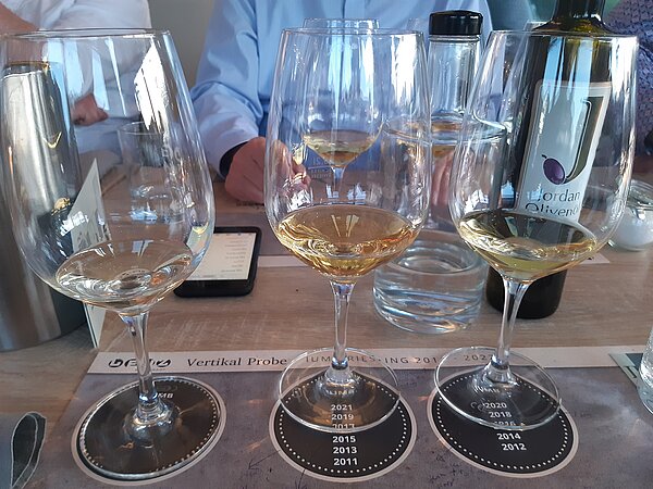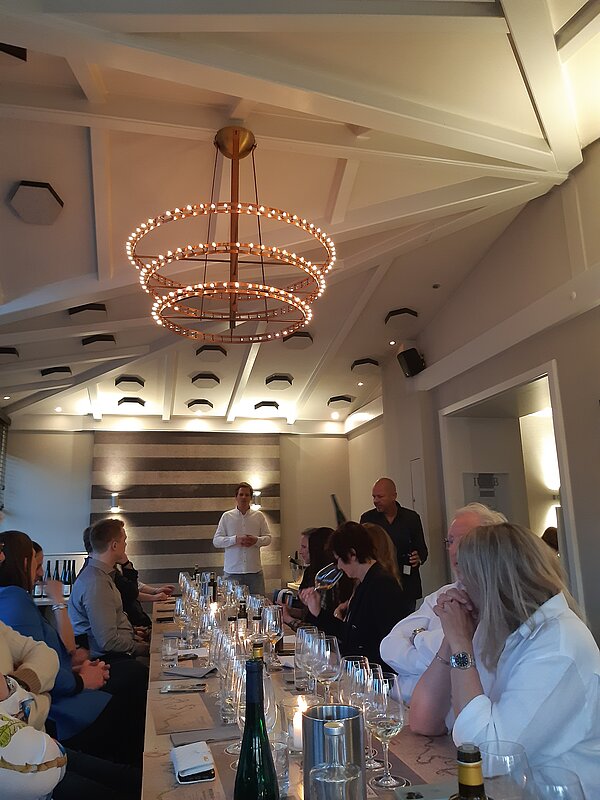 Anlässlich der Aufnahme des IUMB-Riesling 2022 in den offenen Ausschank des Restaurant LENZ in Duvenstedt (Hamburg) verkosteten zwanzig Gäste zwölf Jahrgänge unseres Rieslings.