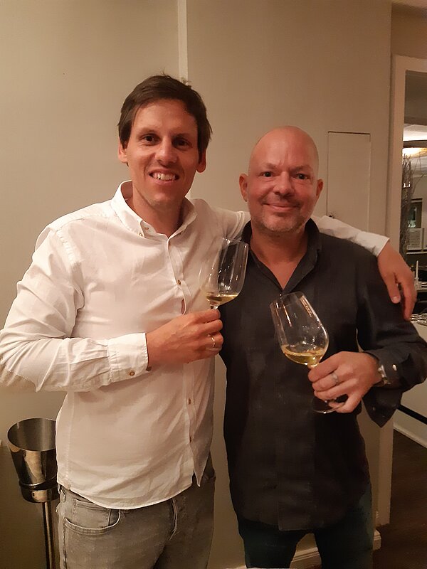 Unser Winzer Gerrit Walter war extra für dieses Ausnahme-Event von der Mosel an die Elbe gekommen und begleitete jeden Jahrgang aus einem schier unerschöpflichen Erinnerungsfundus mit jahrgangsspezifischen Informationen zu Berg und Keller.